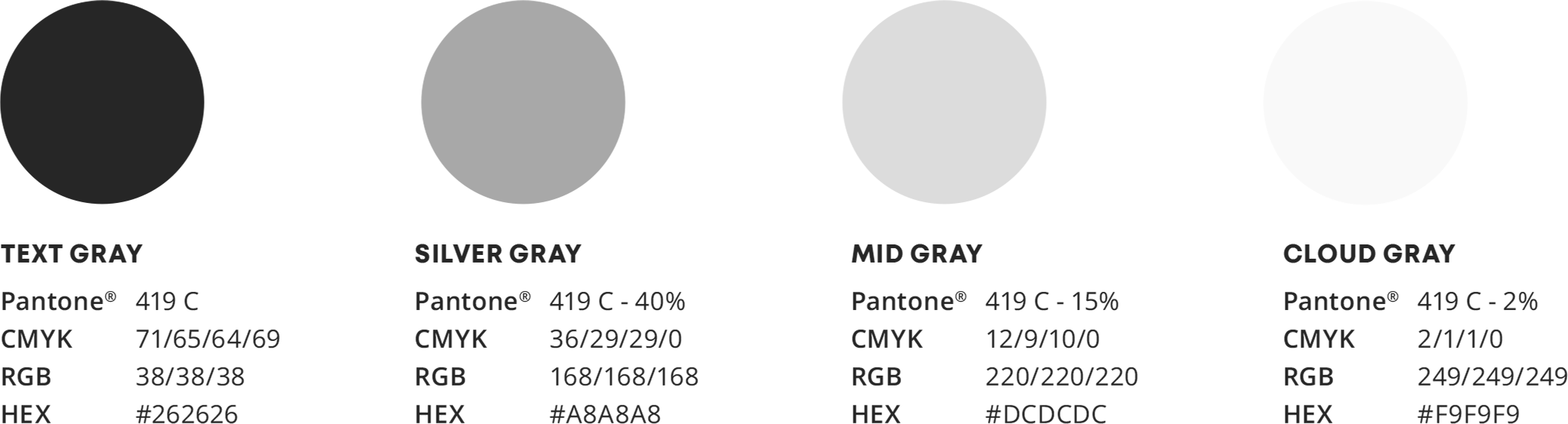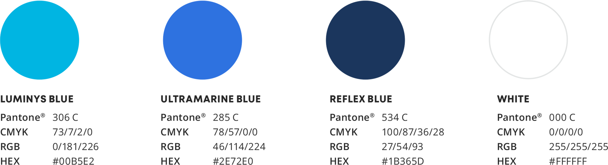 Colors following color values are specified for both print and screen based applications.