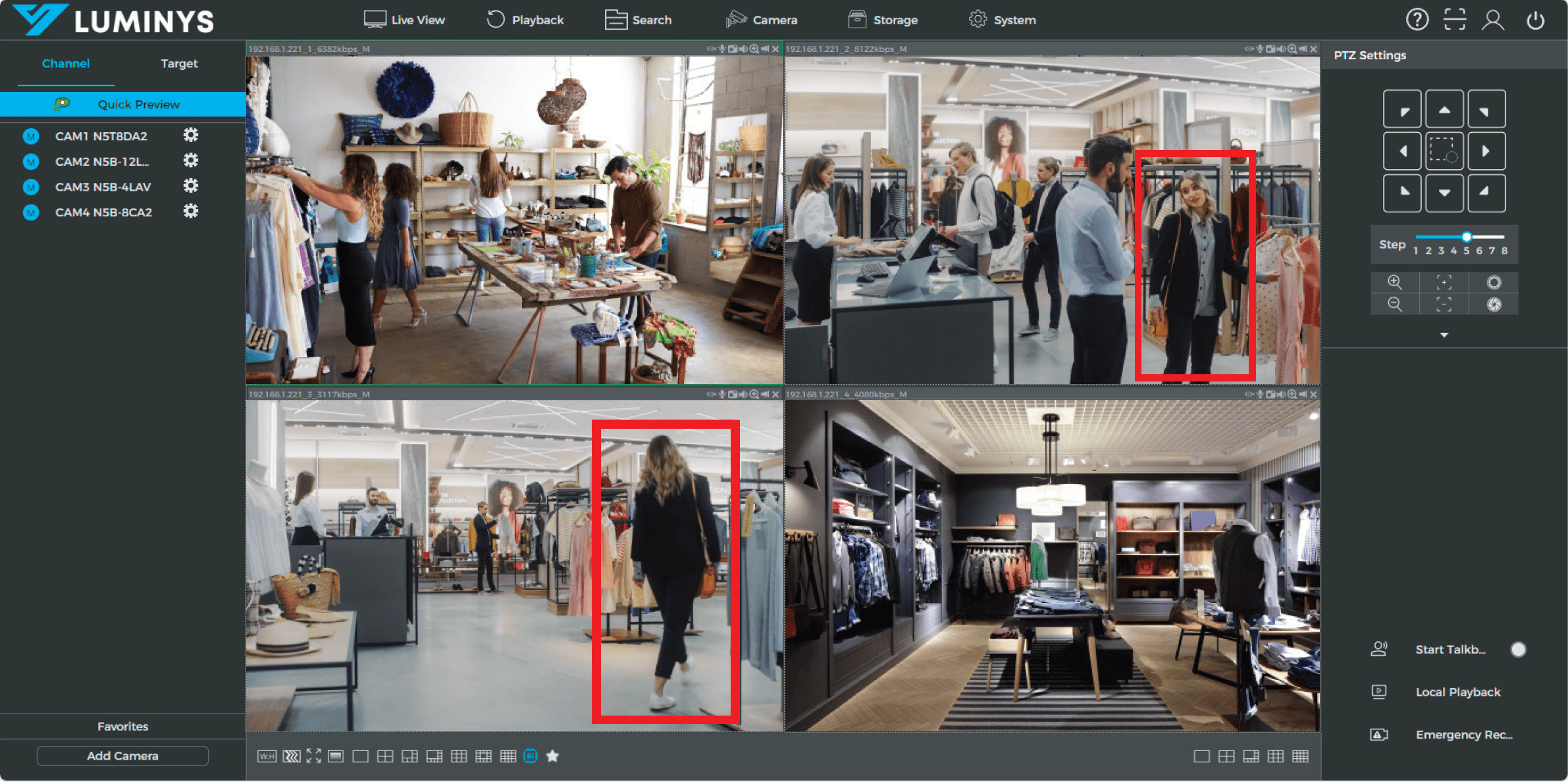 Trajectory Tracking Visualize movement paths across multiple LumiSearch-enabled camera feeds | - | Y | - |