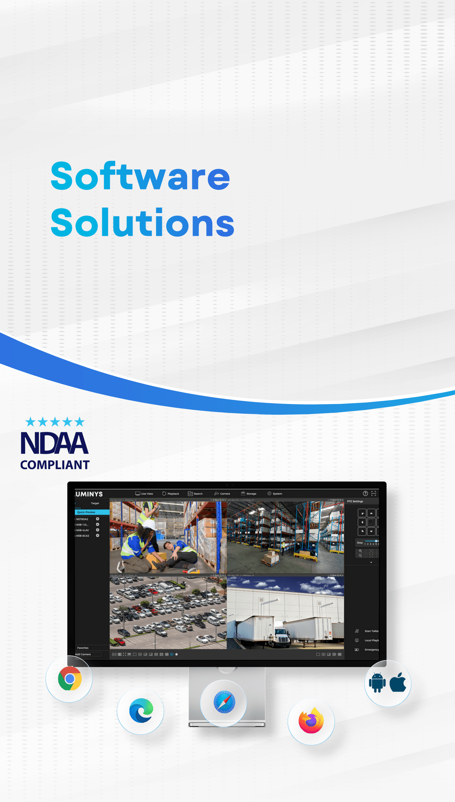 LumiCenter is a state-of-the-art video management software (VMS) designed to seamlessly integrate surveillance cameras, AI-based analytics, and robust server software with web clients and mobile applications.